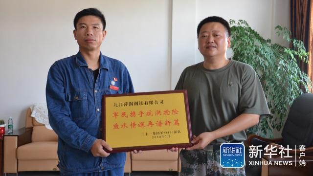 7月30日,在贏得抗洪階段性勝利即將凱旋之際,駐扎在九江湖口的東部戰(zhàn)區(qū)31集團軍73151部隊給方大集團九江萍鋼鋼鐵有限公司送來“軍民攜手抗洪搶險,魚水深情再譜新篇”牌匾,對方大九鋼近一個月來與部隊并肩抗洪搶險和多次貼心服務表示感謝。