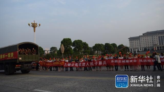 7月31日清晨,31集團軍73151部隊官兵們順利完成各項任務,勝利凱旋。方大九鋼近百人自發(fā)與湖口當?shù)厝罕娨黄鹎描尨蚬?,手拉橫幅、高舉紅旗,夾道歡送抗洪官兵,道不盡的是軍民魚水之情,寫不完的是攜手抗洪壯歌。