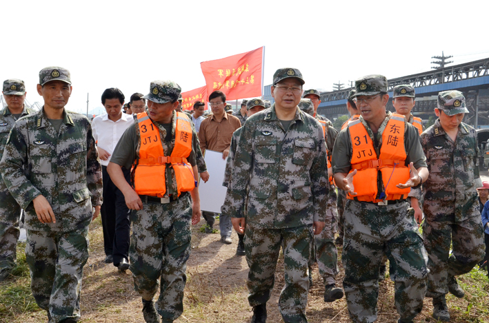 解放軍東部戰(zhàn)區(qū)陸軍政委廖可鐸(圖中)高度贊揚(yáng)九江鋼鐵開(kāi)渠泄洪勇?lián)鐣?huì)責(zé)任(20160720)