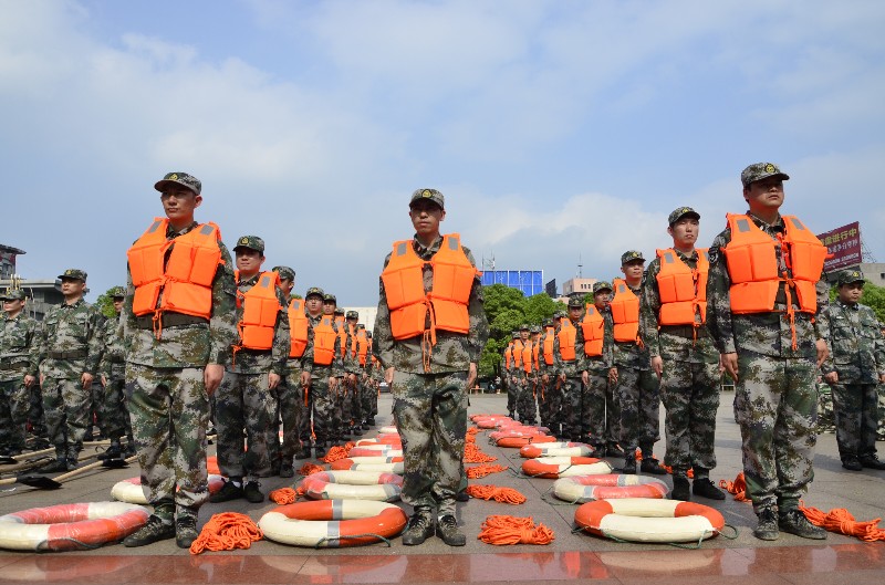 萍安鋼鐵預(yù)備役戰(zhàn)士整裝待發(fā),隨時準(zhǔn)備奔赴抗洪一線。